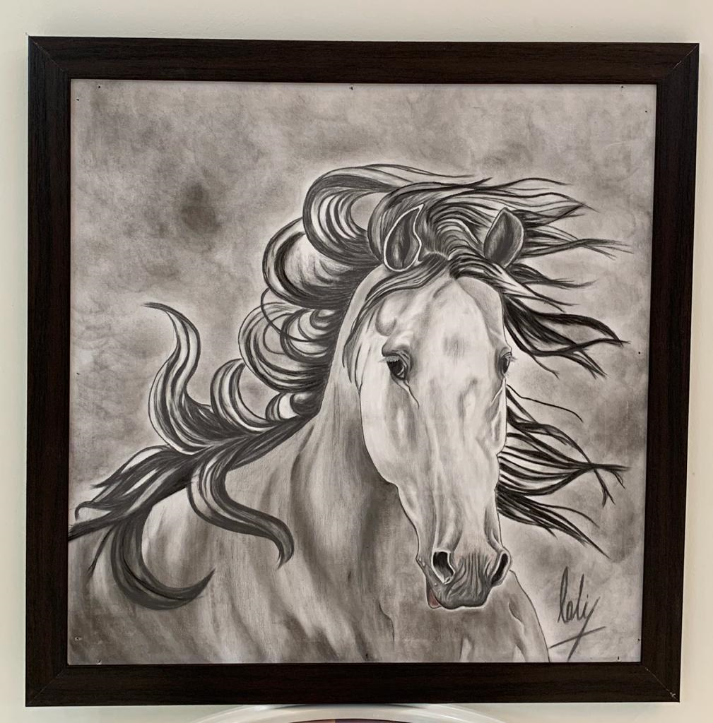 رسم بالفحم والرصاص على لوحه كانفس عرض الوحه 60 سم وطولها 60 سم
