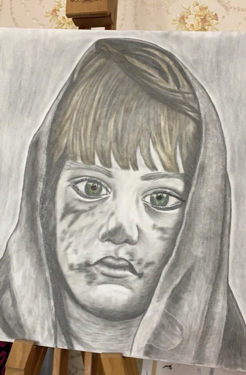 رسم بالفحم على لوحه كانفس عرضها 50 سم وطولها 40 سم