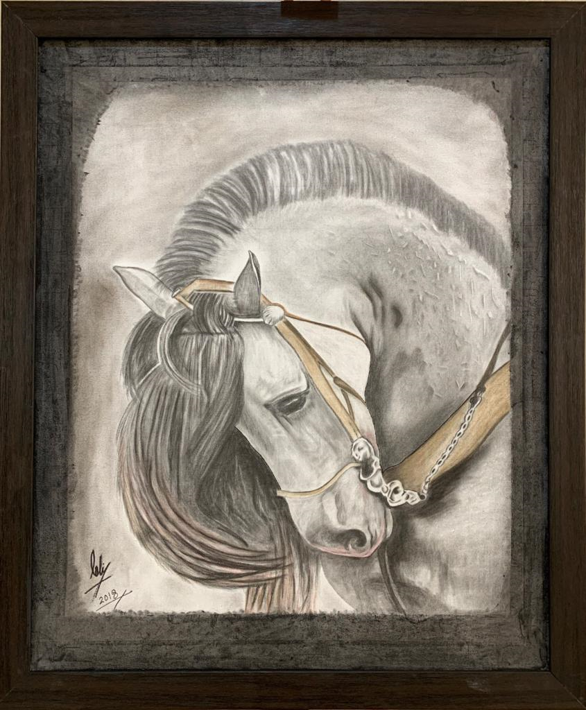 رسم بالفحم على لوحه كانفس عرض 50 سم وطول 60 سم